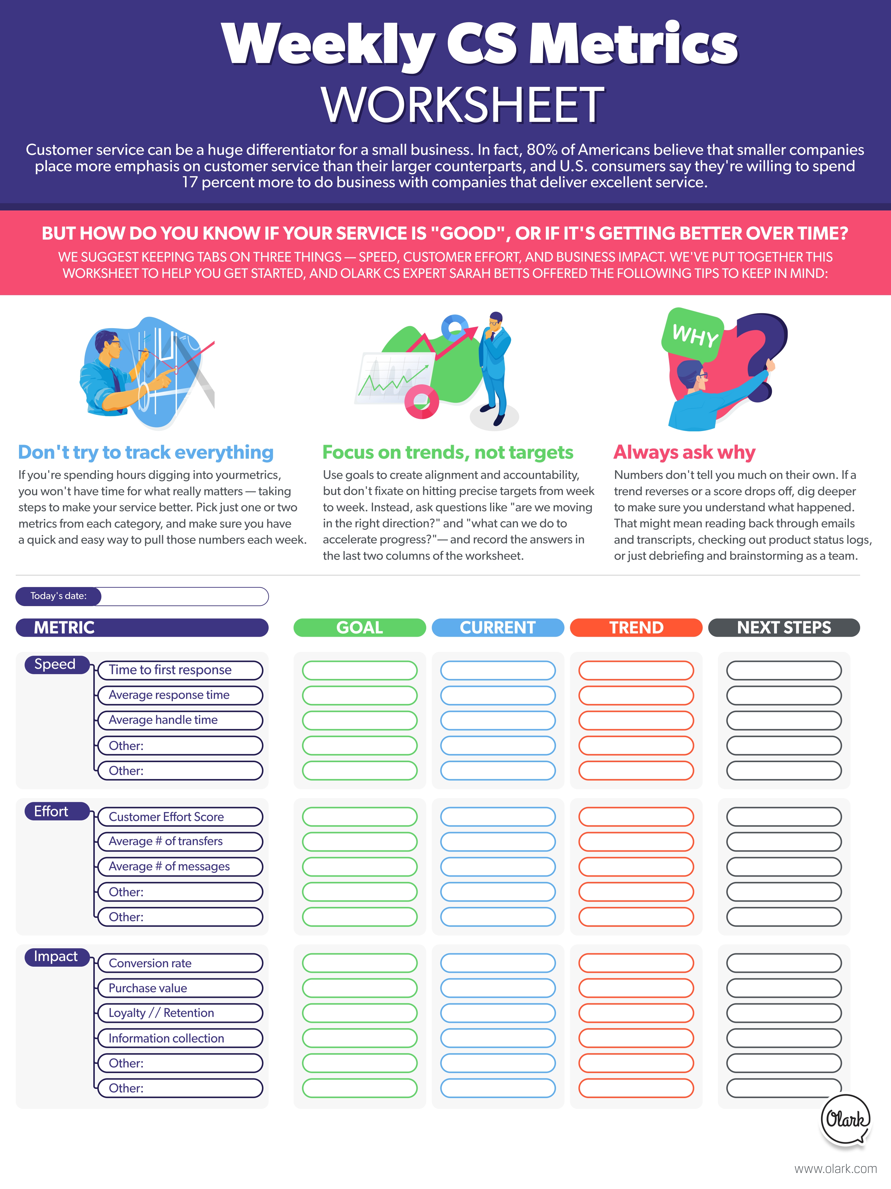 A combination of satisfaction, speed, effort, and business impact metrics can help you understand your performance and stand out from the crowd. If your customer service metrics could use a refresh, we have a worksheet — and some tips from our own resident customer service scientist, Sarah Betts — to help you get started.